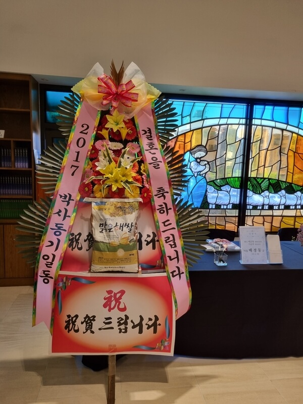원신흥동성당으로 배송된 결혼식 쌀화환입니다
