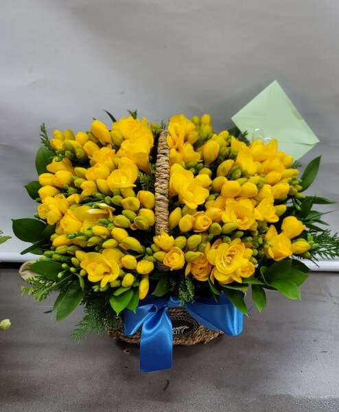 노란 후리지아 꽃바구니 입니다.