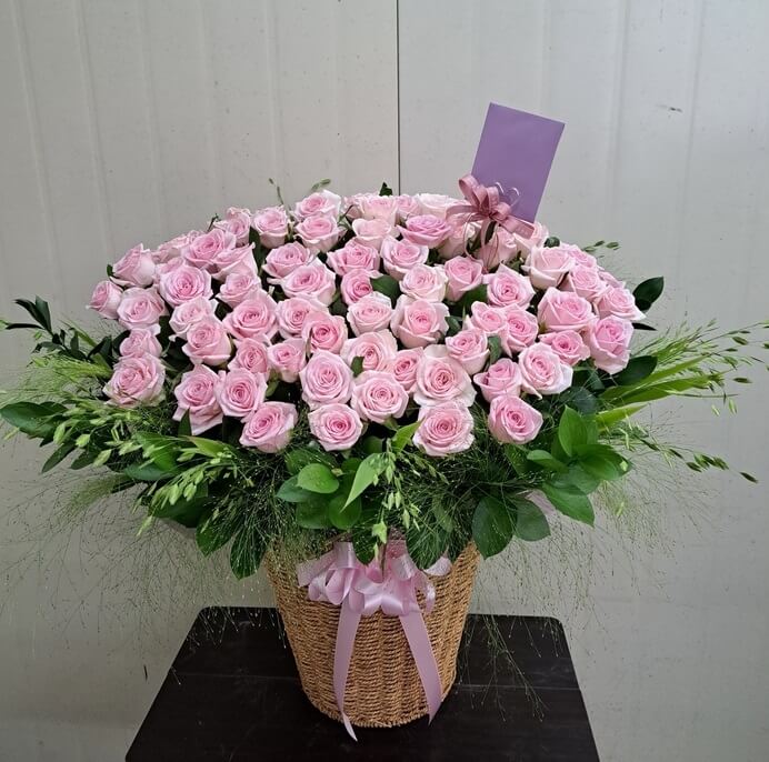 핑크장미 100송이로 제작한 꽃바구니로