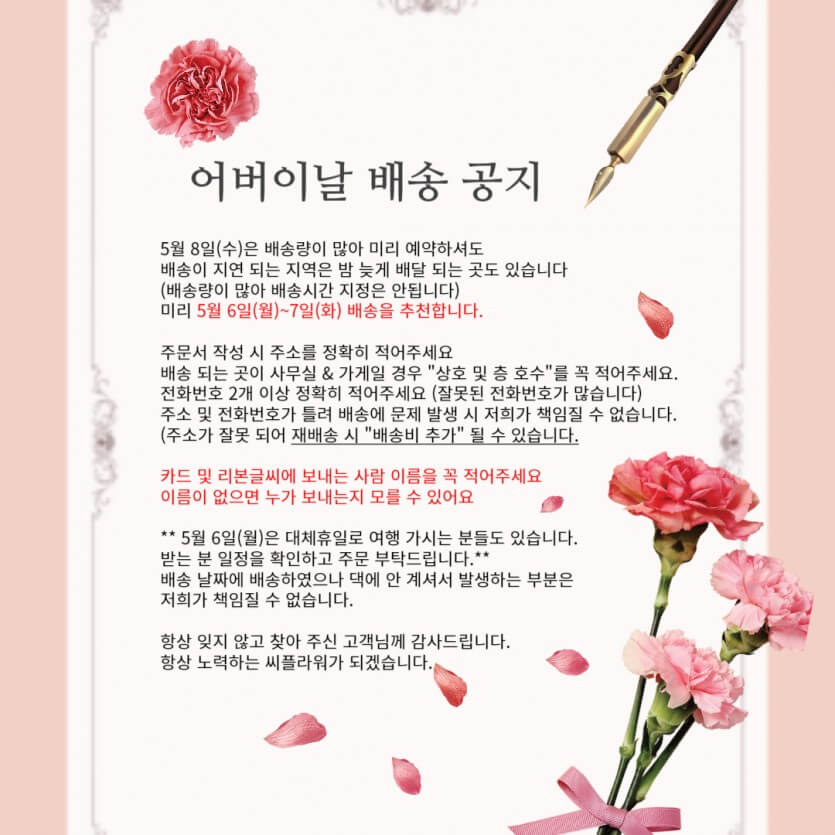 2024년 5월 어버이날 배송 공지 - 6일(월)~7일(화) 배송 권장