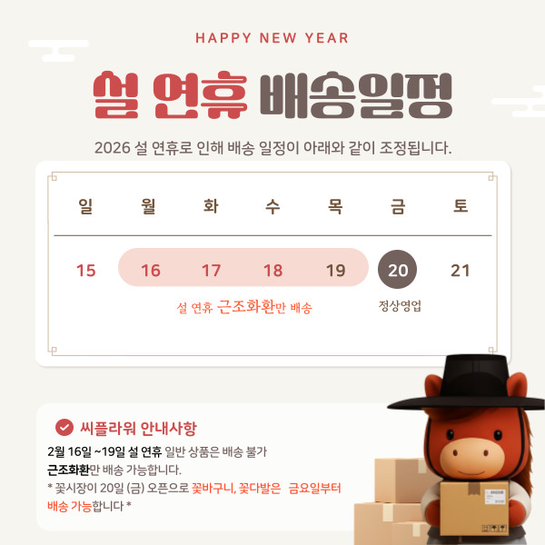 2월 16일(월) ~2월 19일(목)까지 설날 연휴기간 일반 상품은 배송 불가하며