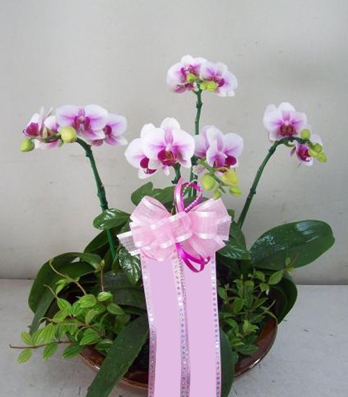 미니 핑크 호접란은 이미지처럼 4대 심어져 배송됩니다.