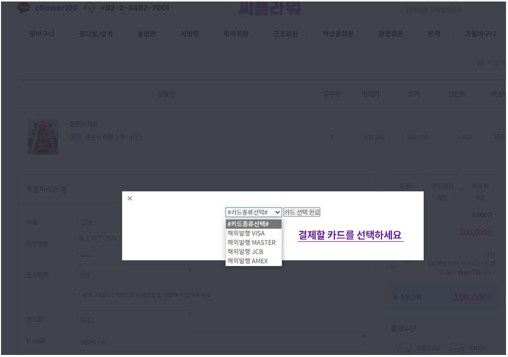 원하시는 카드를 선택하여 결제하시면 됩니다.