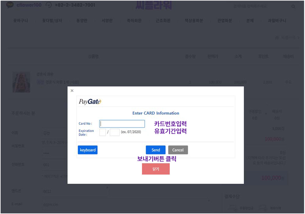3. 주문/결제 페이지에서 주문서를 작성하고